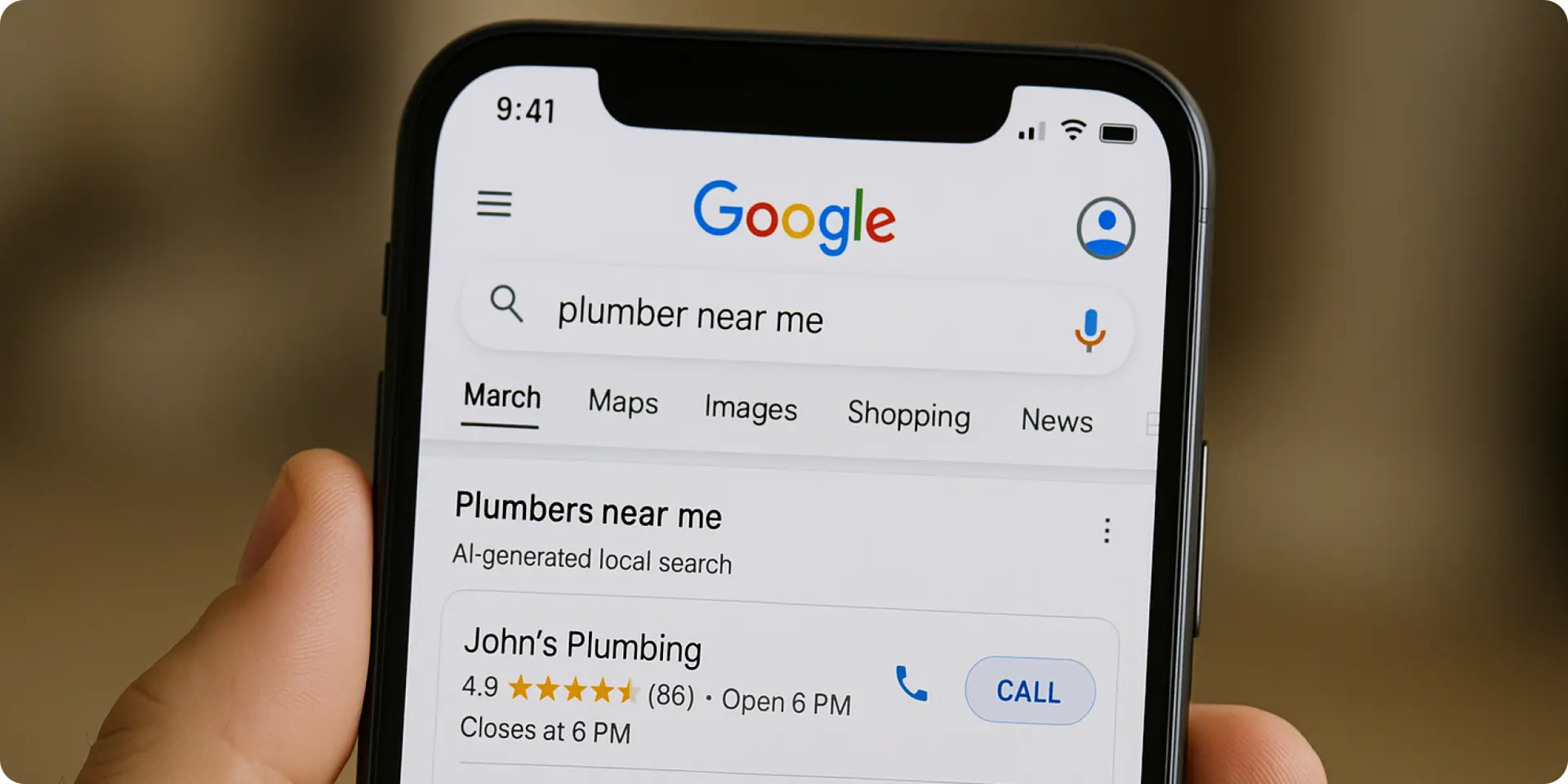 In that moment, they open Google Maps, they type “plumber near me,” and they call the first credible-looking result.