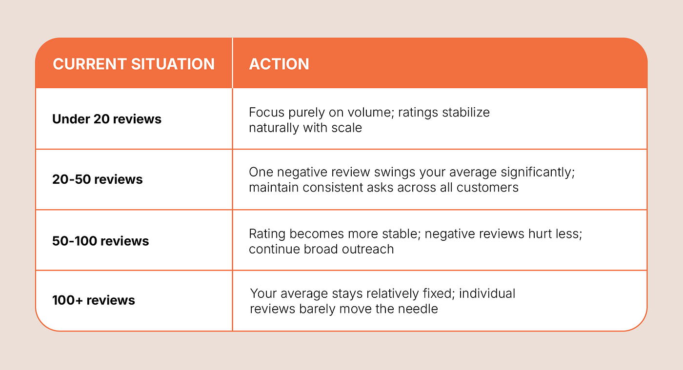 At a certain review volume, the question a potential customer is asking shifts entirely. With 10 reviews, they are wondering: “Is this business legitimate? Can I trust it?” With 200 reviews, they are no longer asking that question. That question has been settled. They are now asking: “Is this the right fit for my specific need?” — which is a much easier question to answer, and one that works in your favor.