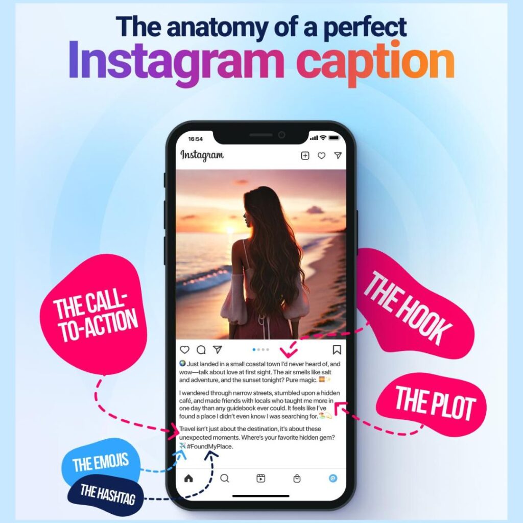 A caption that tells a real story — with specific details, honest emotion, a moment of challenge or change or realisation, and a conclusion that connects the story to something the reader can use or feel — generates more engagement, more saves, more comments, and more shares than almost any other caption structure.